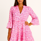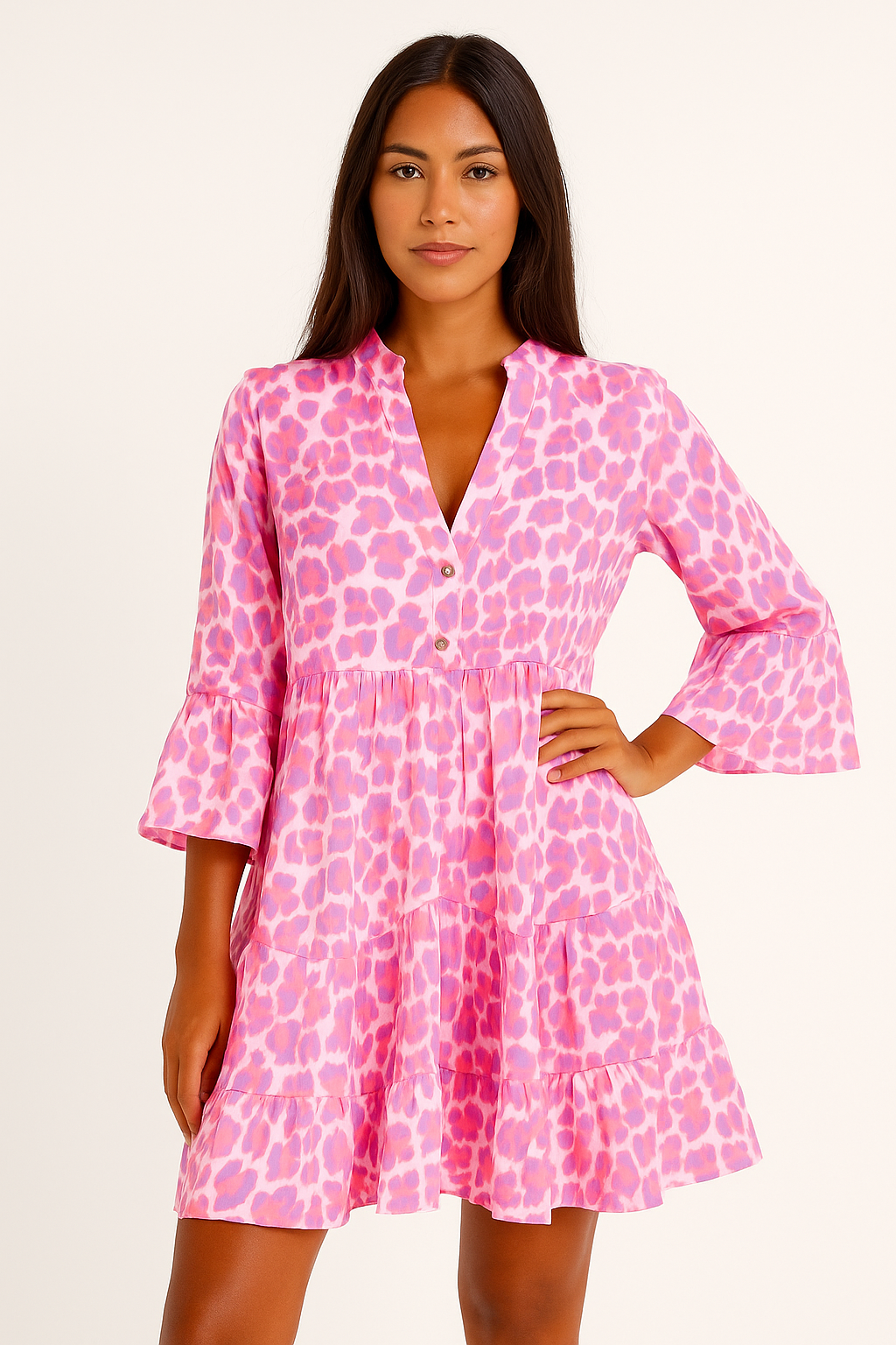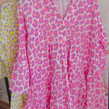 Vestido veraniego, tela símil al lino. Tiene una caída suave y fresca, con el que te sentirás sumamente cómoda y linda.